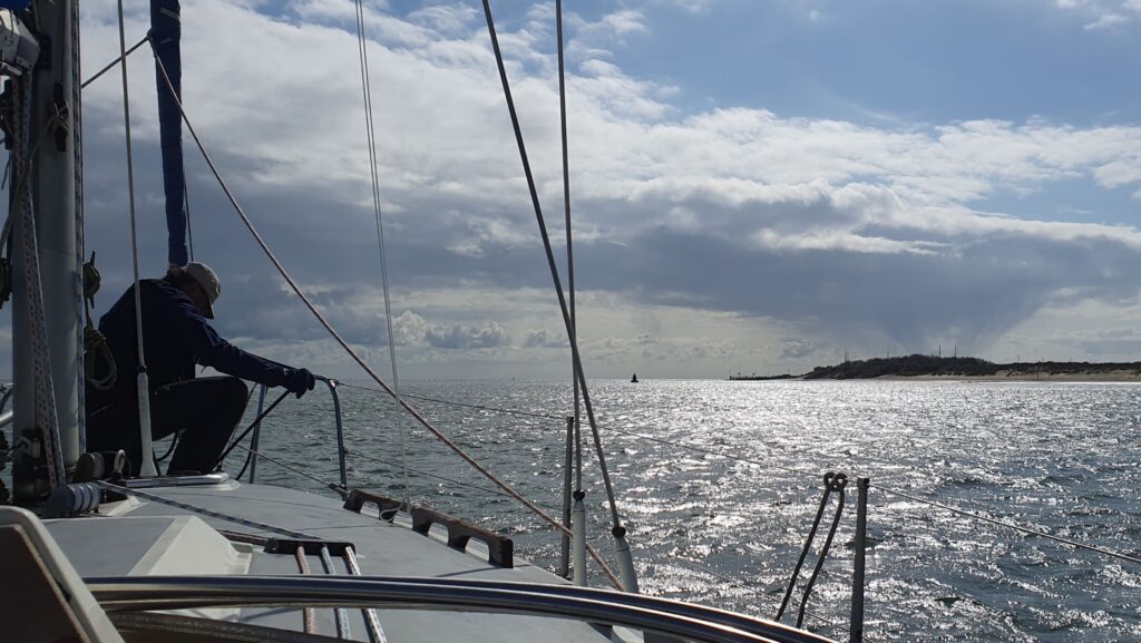 We catch a brief glimpse of the open North Sea. We have wisely taken in the sails when the wind freshens, because we don’t feel like beating against the wind in these conditions. But when we turn into the fairway „Vliesloot“ and the cover of the island calms the swell, we can calmly prepare for the mooring manoeuvre in the marina shortly before the harbour entrance.