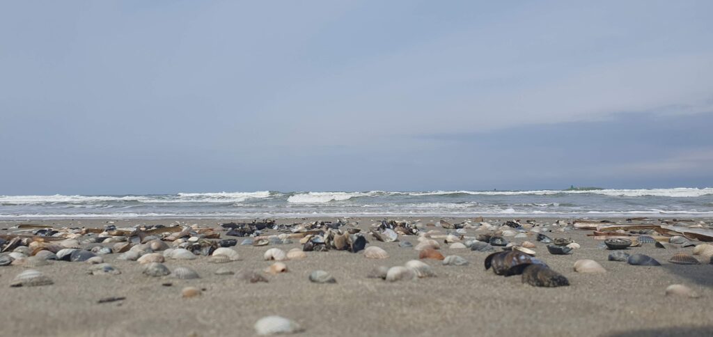 Später gehen wir raus auf den Nordseestrand. Die frische Seeluft und das Wandern auf dem breiten, endlos scheinenden Sandstrand ist entspannend und wohltuend.