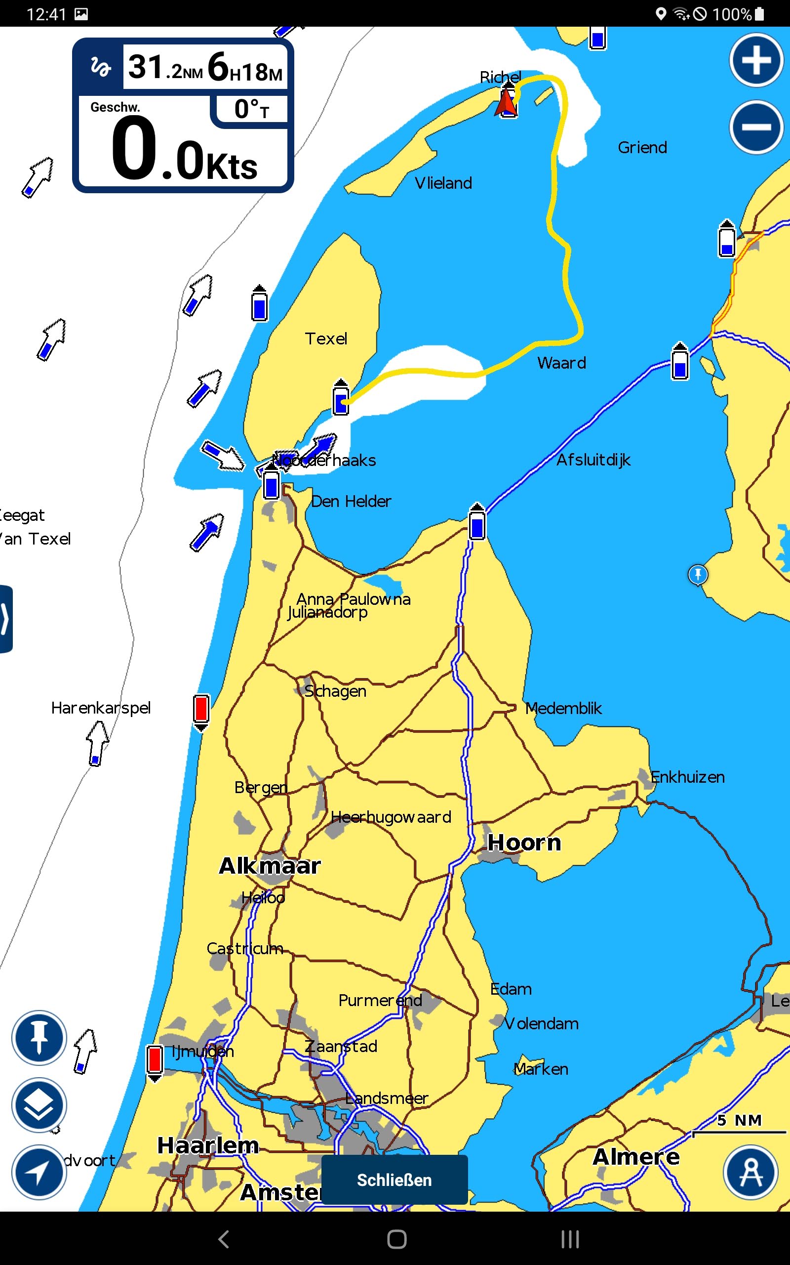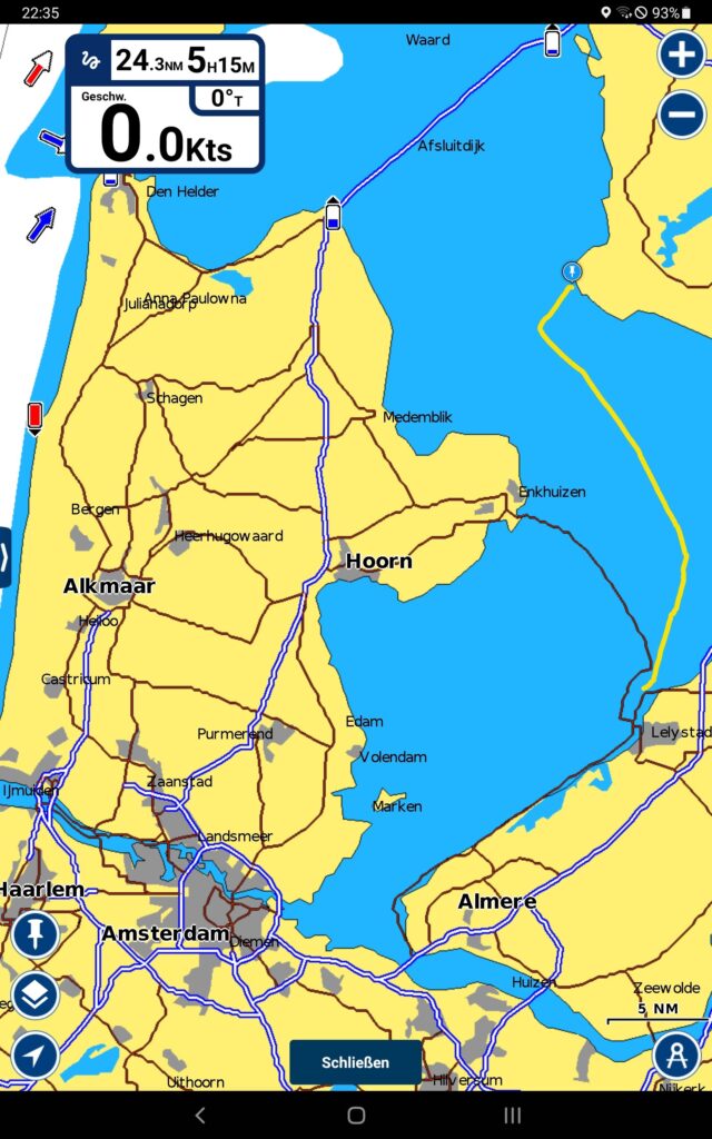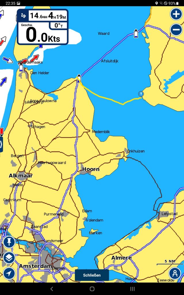 From now on it’s a matter of following the various fairways, Scheurak, Omdraai, Inschot and what they are all called. Depending on the direction of the fairway, we can sail more or less well and after the wind shifts further to the north, we have to cover almost half the distance under motor. The only „critical“ part is actually the fairway „Omdraai“, because we would not find enough depth there except at high tide. The shallowest point we measure is still 2.4 m, 80 cm under the keel. That’s enough!