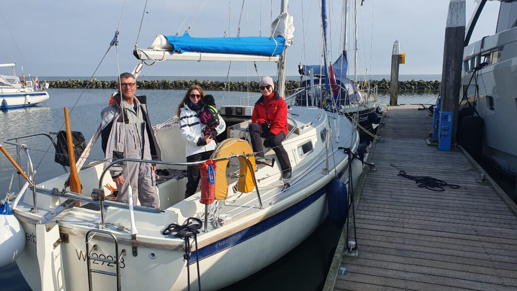 From here we can either sail along the North Sea coast on Wednesday with little to no wind, or on Thursday across the Wadden Sea with winds of 4 to 5 Beaufort. We would all like to sail over the open sea, but 8 hours under engine in 80 to 90 cm of swell is not attractive. 5 Beaufort is not a little, but it shouldn’t be too wild within the chain of islands, especially as the wind comes from the east, so mostly from astern.