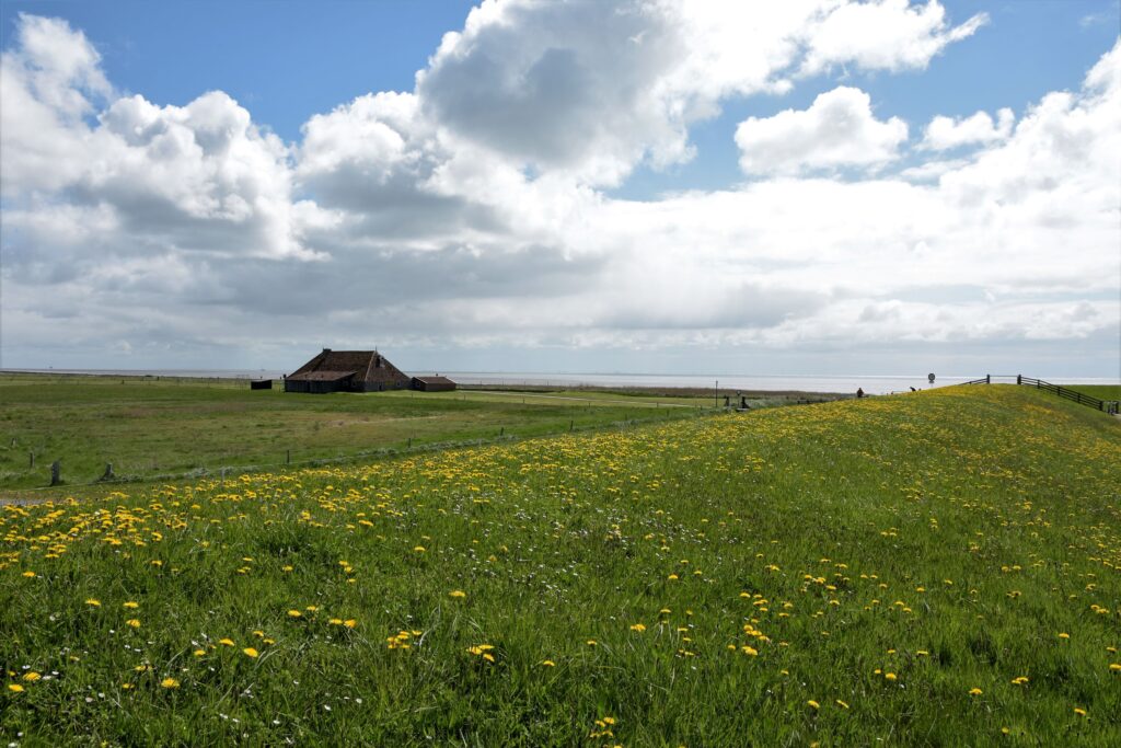 Wir wandern eine Weile den Strand entlang und kehren dann durch einen herrlichen Mischwald zurück zum Polder, das heißt zum künstlich erzeugten südlichen „Flachland“, wo auch Land- und Viehwirtschaft betrieben wird.