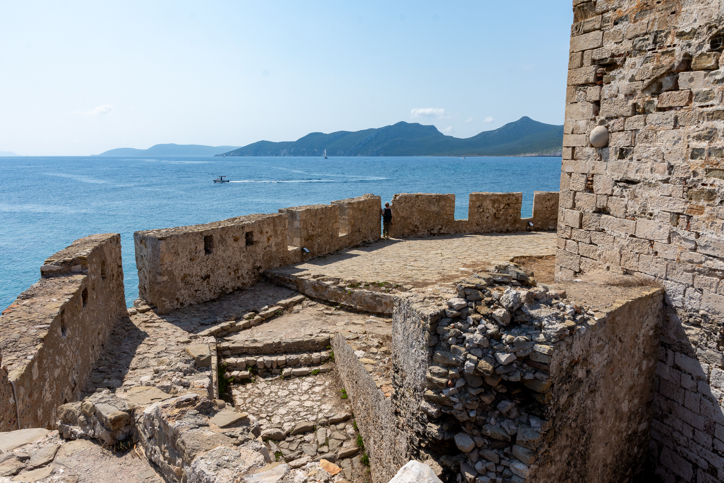 Zwei Festungen an den beiden südlichen Kaps des westlichen „Fingers“ des Peloponnes wurden von originellen Historikern die zwei Augen Venedigs genannt, weil sie den Zugang zum nördlichen ionischen Meer und damit zur Adria und Venedig bewachten. Trotzdem fielen sie den Osmanen in die Hände, wurden wieder zurückerobert, gingen wieder verloren, wie das halt schon so war mit diesen Festungen in unsicheren Zeiten.