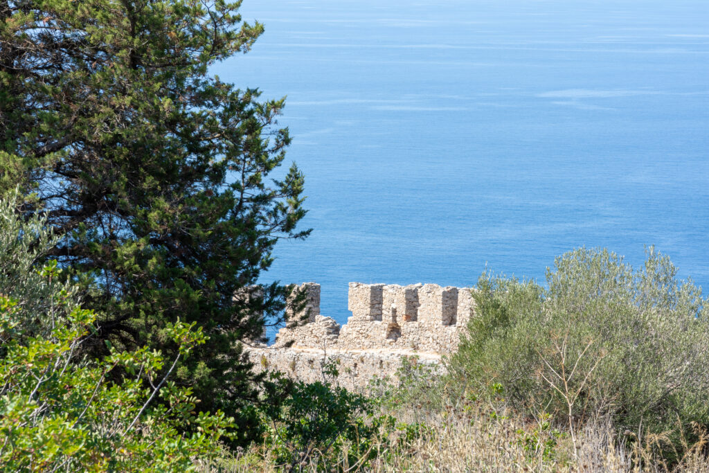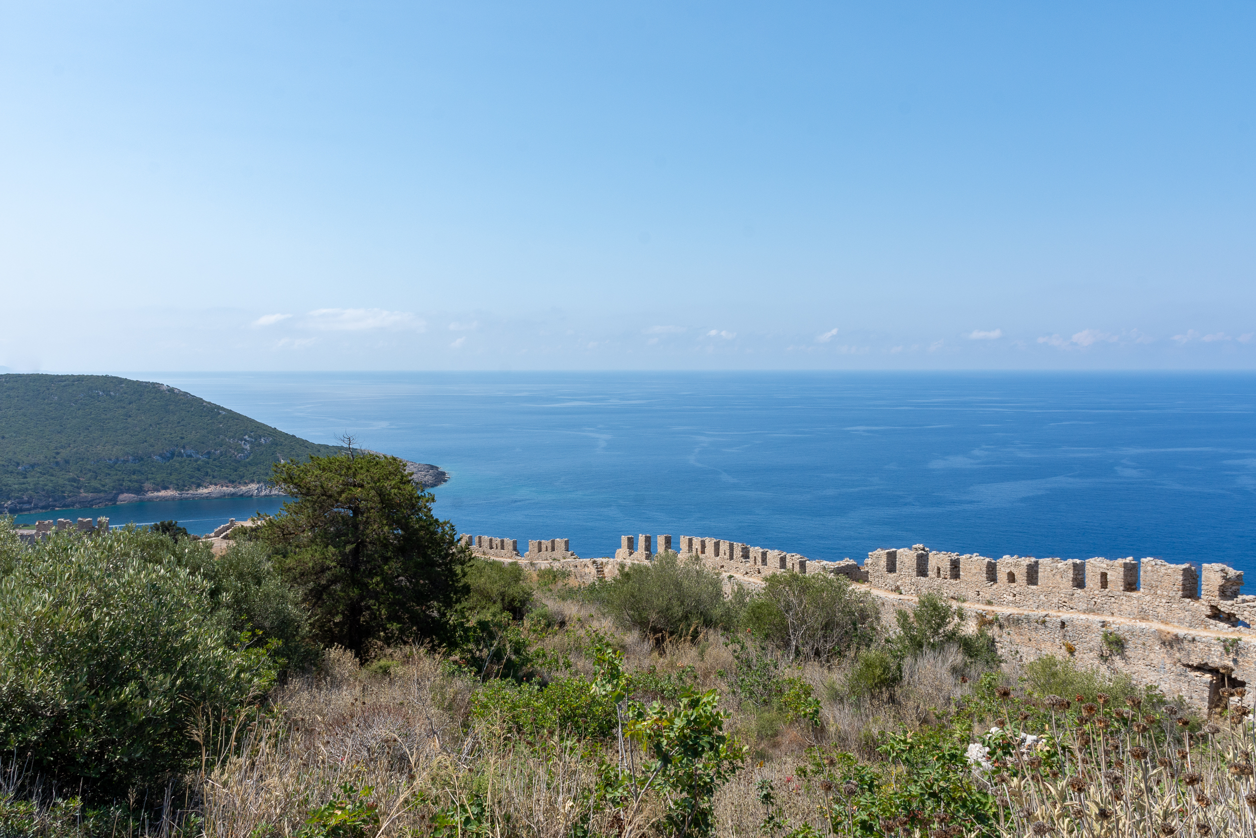 Dazu gesellen sich malerische Buchten, Inseln, und Hügel, die nicht selten mit historischen Ruinen übersät sind. Einen dieser Hügel mit einer dieser Ruinen haben wir erklommen: