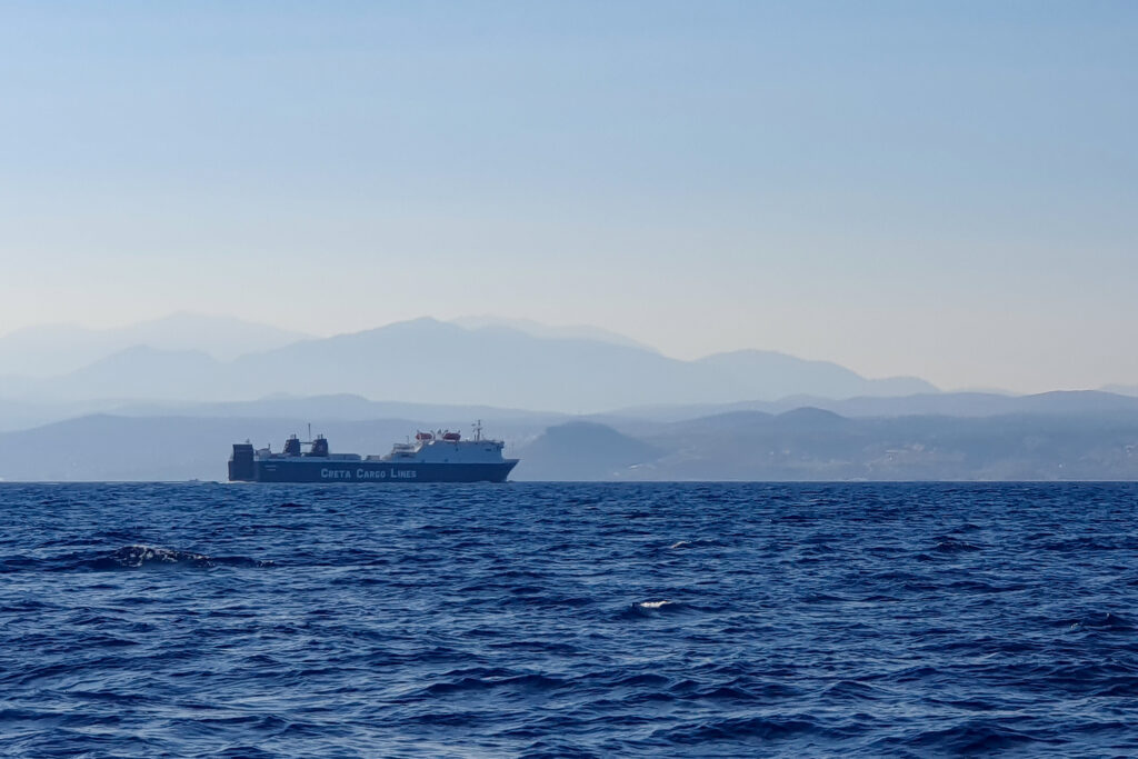 Bei der Überfahrt nach Kreta war schon klar, dass es noch weniger Wind geben würde und wir womöglich (fast) die ganze Strecke motoren müssten. So war es dann auch. Dennoch haben wir mehrmals versucht, nur unter Segel vorwärtszukommen, aber das war leider vergebens.